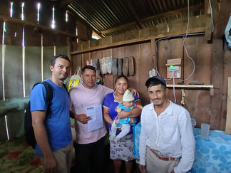 Throughout the week we completed 15 new home installations. Jim, Pastor Domingo, Alex, Harvey, and Alexandro worked on the houses while Wilbert and Allison completed the surveys. The people were so happy to now have lights and we they shared a delicious meal at one house. Here are some of the homes and families with their new solar systems, and that's Alex on the roof again!